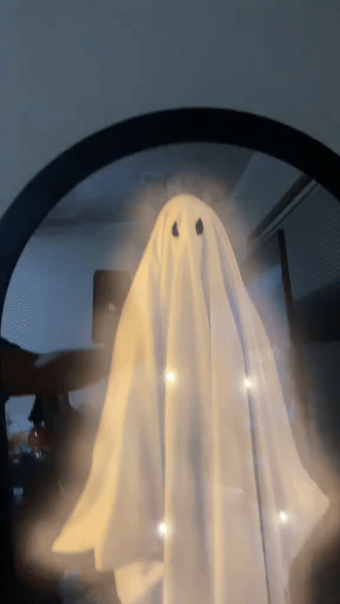 - 👻Haunting: Upon opening, the mirror sparkles to life, revealing a classic sheet ghost inside, making it a conversation for Halloween or themed events.